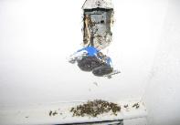 your garage light, hanging from your back wall. They always have more than one way out. One man once told me no big deal. I'll put a trash bag over it and cut off the